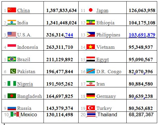 Danh Sach Dan Số Cac Nước Tren Thế Giới