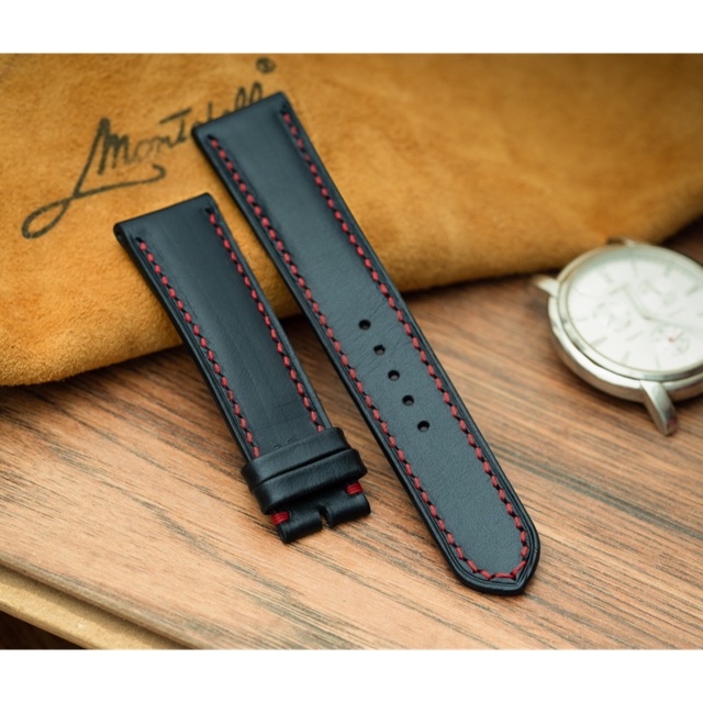 Day đồng Hồ Da Bo đen Trơn Chỉ đỏ Handmade 100 Shopee Việt Nam