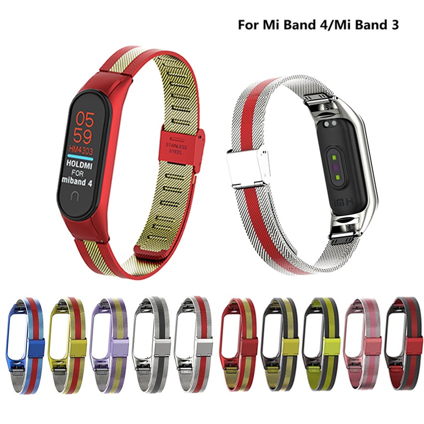 Day đeo Kim Loại Cho đồng Hồ Thong Minh Xiaomi Mi Band 3 Mi Band 4 Thế Giới điện May