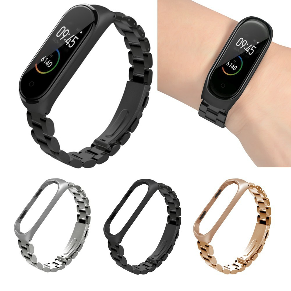 Day đeo Cổ Tay Cho Xiaomi Mi Band 4 3 Day đeo Kim Loại Ba Hạt Bằng Thep Khong Gỉ Miband 4 Day đeo Cổ Tay Khong Vit Lazada Vn