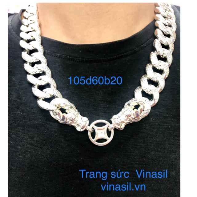 Day Chuyền Bạc Nam đầu Rồng đuoi Rồng 10 Cay Trang Sức Vinasil