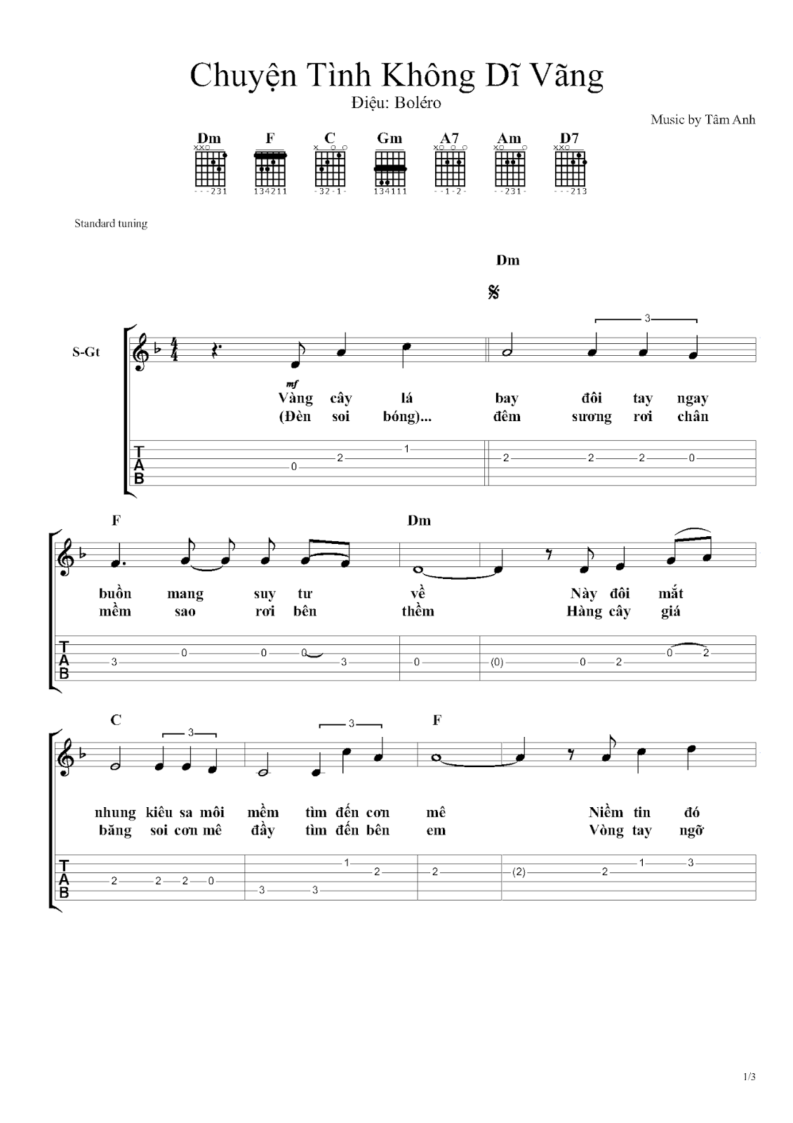 Hợp Am Nốt Va Lời Chuyện Tinh Khong Dĩ Vang Tam Anh Sheet Nhạc Nốt Nhạc Hợp Am Vn Guitar