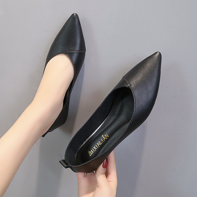 Mũi Nong Giay Nữ Got Vừa 2020 Mua He Mẫu Mới Da Thật đế Tho đầu Nhọn Giay Cong Sở Nữ Dễ Phối Giay Da Mau đen Lazada Vn