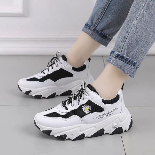 Miễn Phi Ship Giay Thể Thao Nữ đế Cao Phong Cach Han Quốc Trắng đen Số 8 Shopee Việt Nam