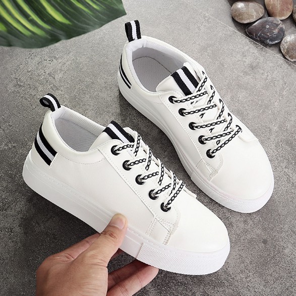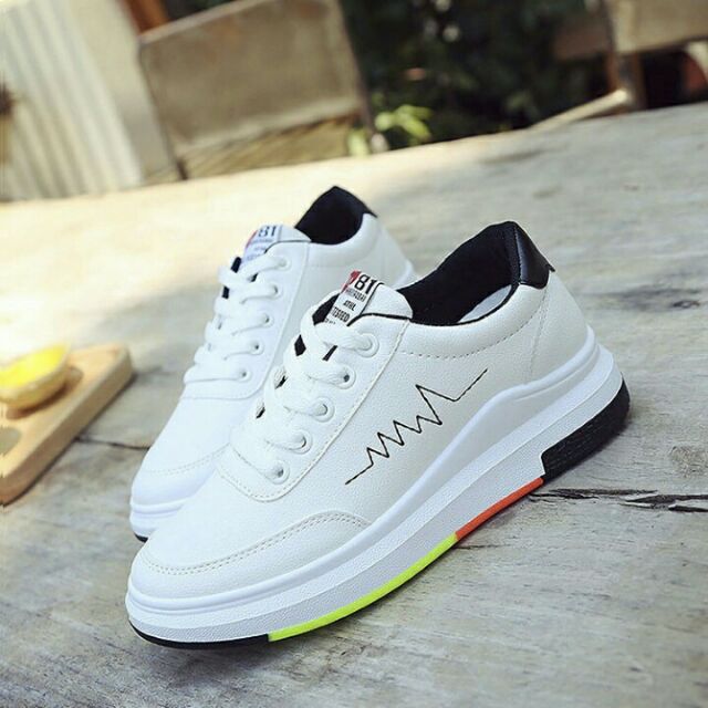 Giay Thể Thao Nữ Viền Tim Chữ Mau Trắng Kem Chất Da đẹp độn đế Cao Thời Trang Han Quốc đi Học đi Chơi Hot 2020 Shopee Việt Nam