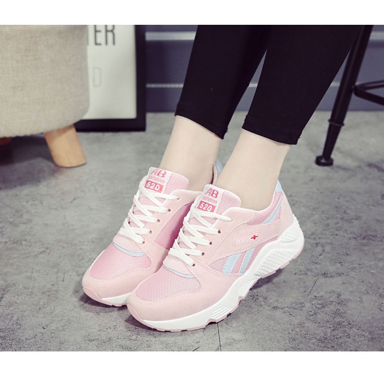 Giay Thể Thao Nữ Ba Dan Mau Hồng Mau Xam Giay Nữ Trắng đế Cao