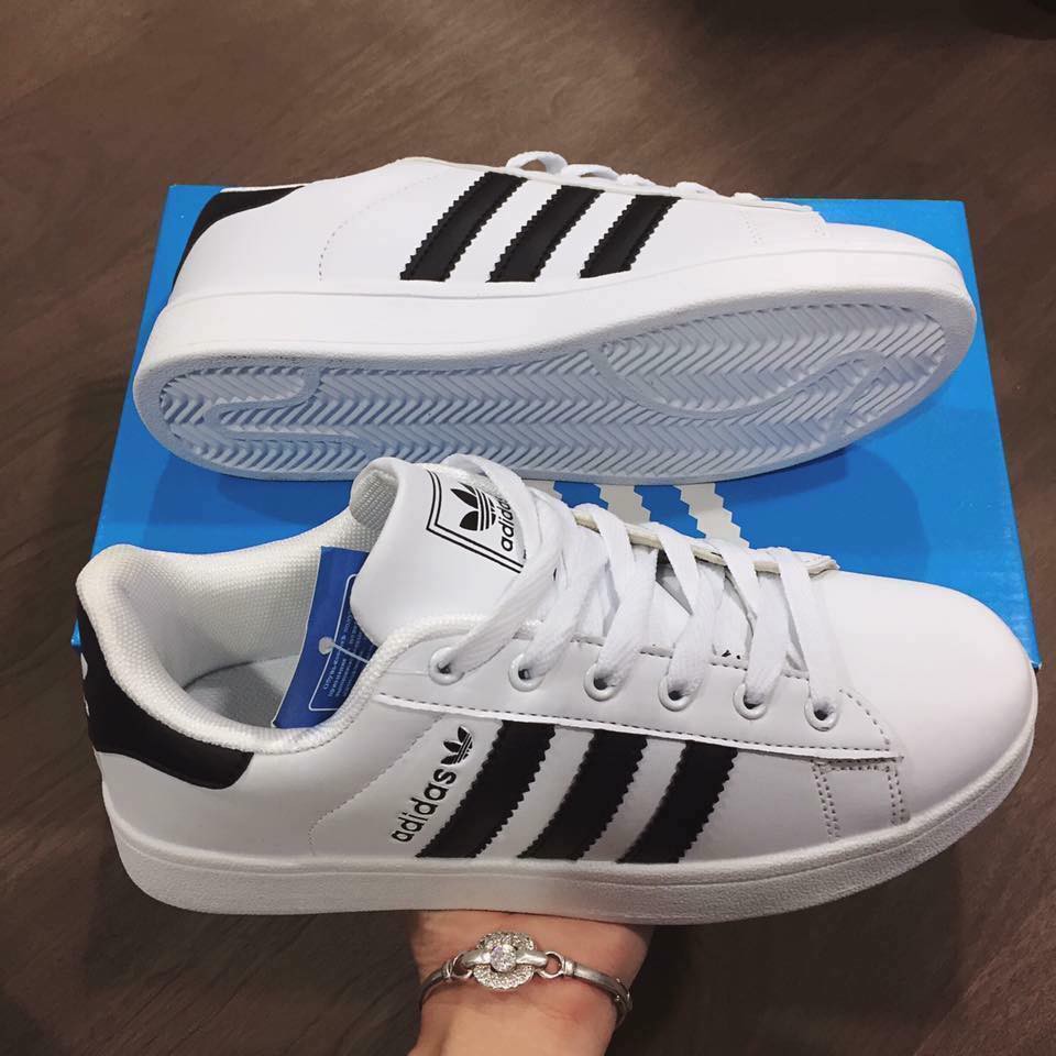 Full Box Giay Thể Thao Nam Nữ Adidas Mũi Trơn Mau Trắng Sọc đen Shopee Việt Nam