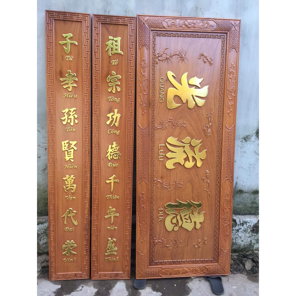 Bộ Hoanh Phi Cau đối Gỗ Mit đồ Thờ Sơn đồng
