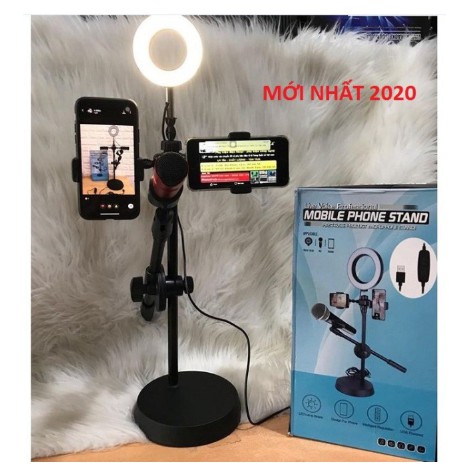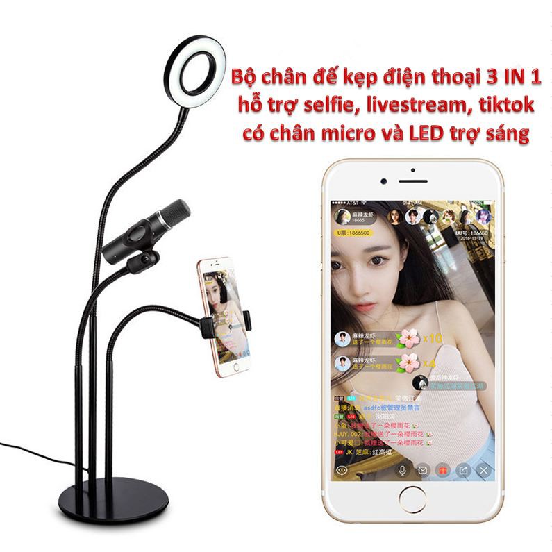 Bộ Gia đỡ điện Thoại Micro Thu Am Chuyen Livestream Co đen Led Ls 02