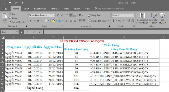 Ham Networkdays Ham Tinh Số Ngay Lam Việc Giữa 2 Ngay Cho Trước Trong Excel Học Excel Tại Excelfree Net Miễn Phi Online