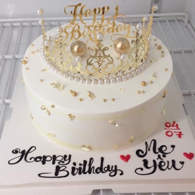Banh Kem Mau Trắng đinh Hạt Vang Trang Tri Vương Miện Ngọc Trai Sang Trọng Banh Thien Thần Chuyen Nhận đặt Banh Sinh Nhật Theo Mẫu