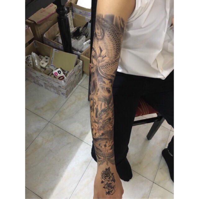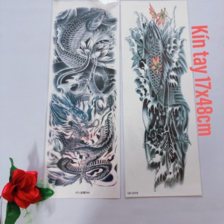 Combo 2 Tấm Hinh Xăm Dan Kin Tay Ca Chep Rồng đen Trắng 17x48cm Mua 2 Combo Tặng Bắp Tay Xinh Giảm Chỉ Con 86 000 đ