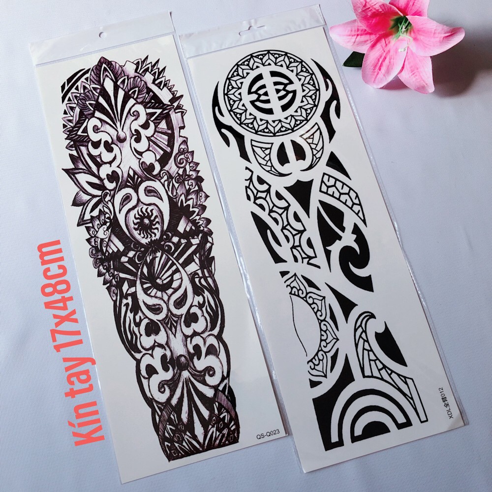 Combo 2 Tấm Hinh Xăm Dan Kin Tay Hoa Văn đẹp đen Trắng 17x48cm Tặng Bắp Tay Xinh 10x20cm Shopee Việt Nam