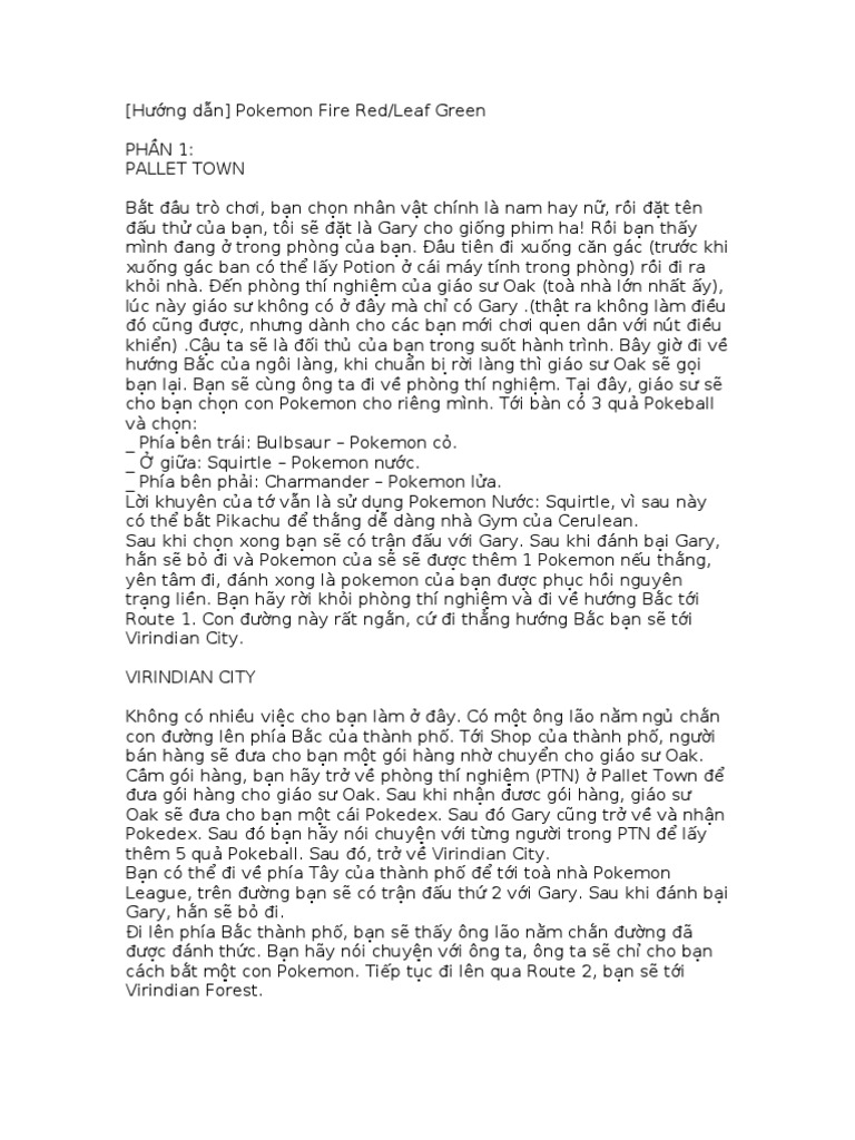 Hướng Dẫn Hoan Chỉnh Pokemon Fire Red Leaf Green