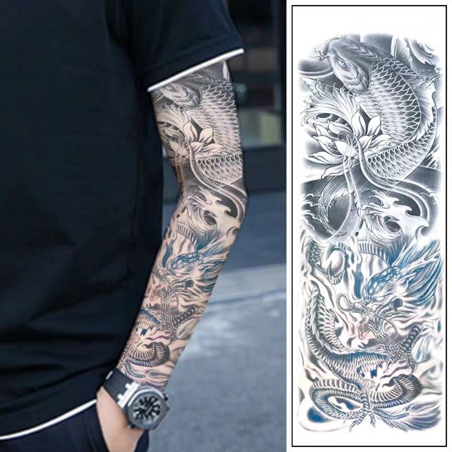 Hinh Xăm Dan Ca Chep Hoa Rồng Vượt Vũ Long Mon Mau 35x50cm Tặng Ngay 1 Tấm Bắp Tay Khi Mua 2 Tấm Kin Lưng Lazada Vn