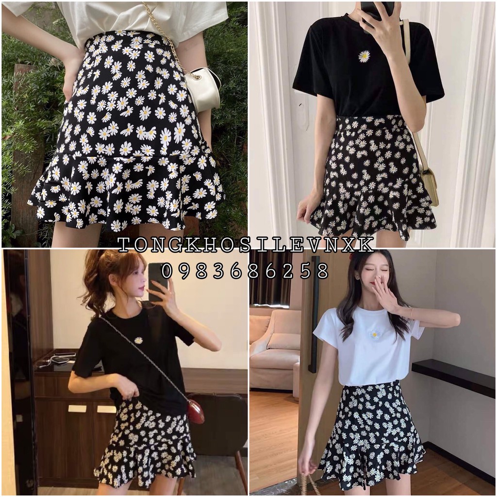 Set Bộ Cuc Hoạ Mi Chan Vay Va Ao Thun Daisy Trắng đen Ulzzang Chan Vay đuoi Ca Ngắn Hoa Cuc Xoe Mau đen Hot Shopee Việt Nam